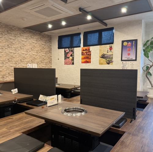 各種宴会にもぴったりな掘りごたつ席をご用意。ゆったりとした空間で、美味しいお肉をご堪能ください。